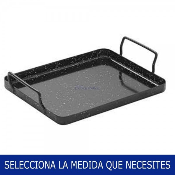 Bandejas de acero y esmaltado. Se pueden usar en horno y fuego. Se suelen utilizar para hacer arroz a la llauna o caracoles.