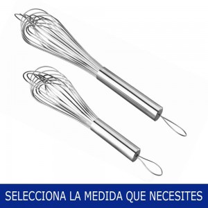 Batidor de inoxidable con 4 medidas diferentes. Aptos para cocina, repostería, etc.