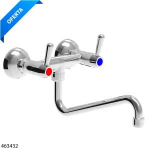 Grifo de dos aguas para colocar en pared con caño bajo.