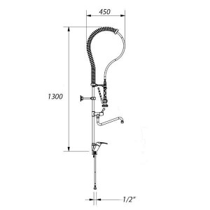 Grifo ducha para uso industrial con caño y acción por monomando.