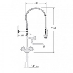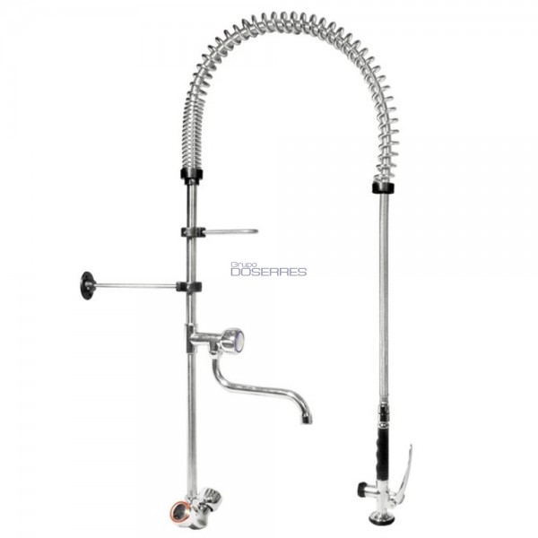 Grifo ducha con caño, especial para fregaderas industriales y hostelería en general. Modelo muy usado en fregaderas con cubas hondas, facilitan el prelavado y lavado de menaje de grandes dimensiones. Ideal también para prelavado en fregadera de entrada para lavavajillas de cúpula.