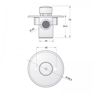 Pulsador temporizado regulable entre 3 y 25 segundos de paso de agua y cierre. Provisto de embellecedor en forma de aro fabricado en acero inoxidable.
