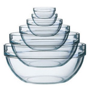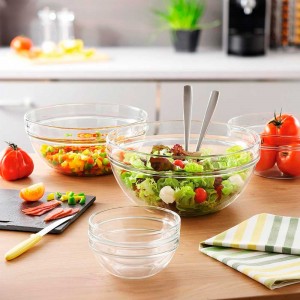 Lavafrutas apilables de vidrio. Bol o cuenco de vidrio apilable para comedores escolares, recidencias y colectividades.