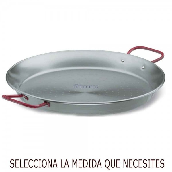 Paellera valenciana de hierro pulida, para especial para hostelería e indicada para fuego. Nuestras paellas están fabricadas en Valencia, provístas de asas resistentes y acabado pulido.