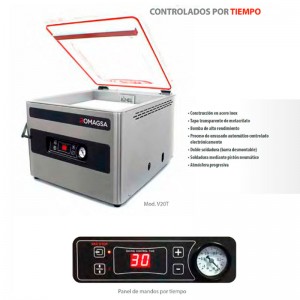 Funciona con sistema de vacío de tiempo. La máquina configura el tiempo del ciclo de envasado al vacío.