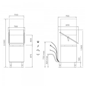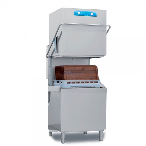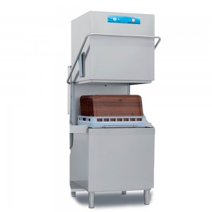 Lavavajillas de capota de alta capacidad con cesta de 50x60 cms. Elettrobar MISTRAL 94XD con doble pared integral con campana dotada de aislamiento termo acústico. La cuba está estampada y dotada de filtro integrado. Campana con suave elevación y reducido esfuerzo para el trabajador. La cámara de lavado no tiene tuberías ni aristas y es de gran capacidad.