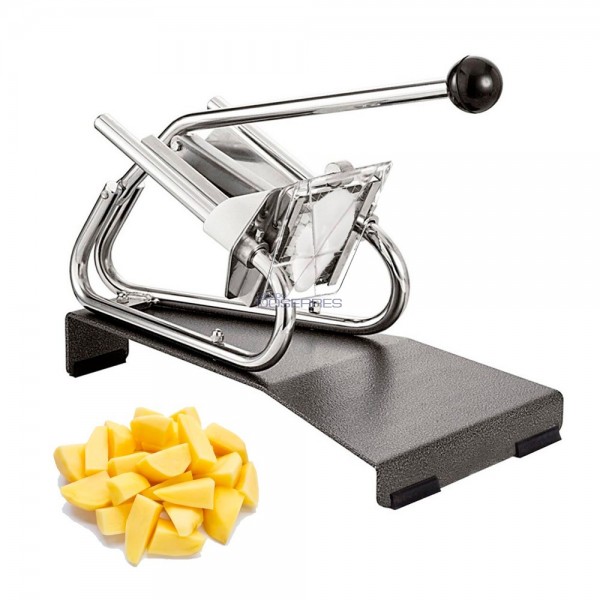 Ahorra tiempo y dinero con nuestro cortador de patatas fritas profesional con cuchilla para patatas bravas o estofadas. Trabajo fácil y ahorro de tiempo en el corte de la patata.