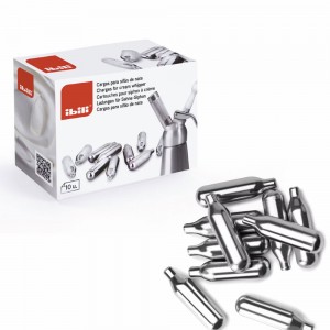 - Sólo tendrás que colocar en él un cartucho de gas y agitarlo vigorosamente y tu sifón estará listo para su uso.