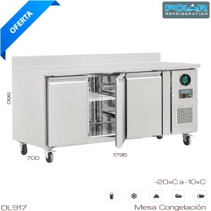 Mesa de Congelación Polar para optimizar su cocina industrial. Elemento imprescindible en cocinas de alta rotación en bares, restaurantes y cocinas de catering. Provista de 3 puertas y ruedas para un desplazamiento cómodo.