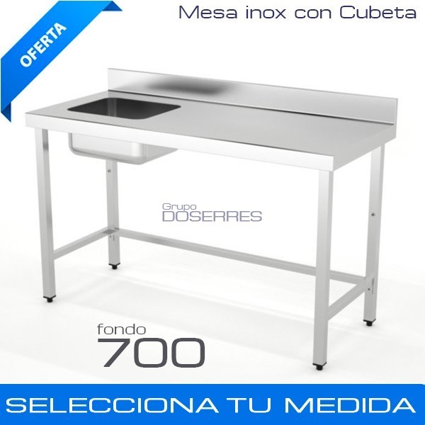 Mesa de trabajo mural provista de cubeta soldada de 500x400x250 mm.