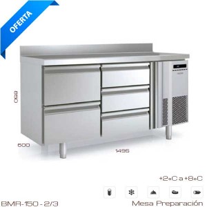 Mesa refrigerada con dos módulos de frío. Uno con dos cajones y otro de 3.