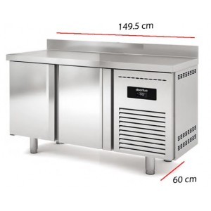 Alto mostrador industrial refrigerado con puerta de cristal y luz interior, especial para bares y restaurantes, destinado a la conservación de alimentos, bebidas y como mesa de trabajo. Temperatura trabajo de +2º a +6º.