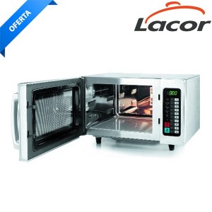 Horno microondas profesional Lacor con capacidad de 25 litros. Este microondas es ideal para un bar, restaurante u hotel. Este ha sido diseñado para un uso intensivo, reduciendo el tiempo de calentameiento un 60%.