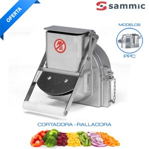 Accesorio para las peladoras de patatas con toma de accesorios, modelos PPC de Sammic. Este accesorio es ideal para cortar todo tipo de hortalizas y verduras, además de rallar queso, pan, chocolate, etc...