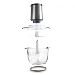 Esta picadora está formada por un pulsador en la parte superior que activa el funcionamiento, el cabezal motor unido a una tapa transparente, la cuchilla y el contenedor de cristal donde se colocan los alimentos. A mayores incluye una tapa extra para cerrar el contenedor de cristal, muy útil por ejemplo para para la conservación en el frigorífico de los alimentos picados.