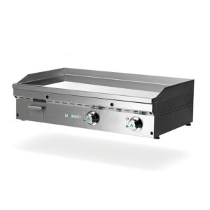Los fry-tops híbridos se caracterizan por tener un funcionamiento de plancha y una potencia y medidas de fry-top. La salida de gases se produce en los laterales y en la parte trasera, igual que la plancha, pero su potencia es mucho mayor.