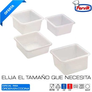 Cubeta Cuadrada color blanco con diferentes capacidades. Cubeta alimentación ideal para transporte y almacenaje de alimentos.