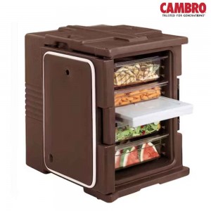 Contenedor Isotérmico robusto y confiable CAMBRO. Este UPC400 está construido de una sola pieza lo que garantiza una durabilidad sin precedentes. Cuenta con asas ergonómicas e irrompibles moldeadas para el transporte con dos personas y un cierre de acceso rápido. Grieso aislamiento libre de FCF. Almacena durante más de 4 horas alimentos fríos o calientes.