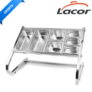 Soporte simple para cubetas gastronorm ideal para cocinas profesionales, restaurantes, buffet, autoservicio, etc. Con este soporte podrá mantener organizado los alimentos y ahorrar tiempo en la preparación de platos. Esta fabricado en acero inoxidable 18/10.
