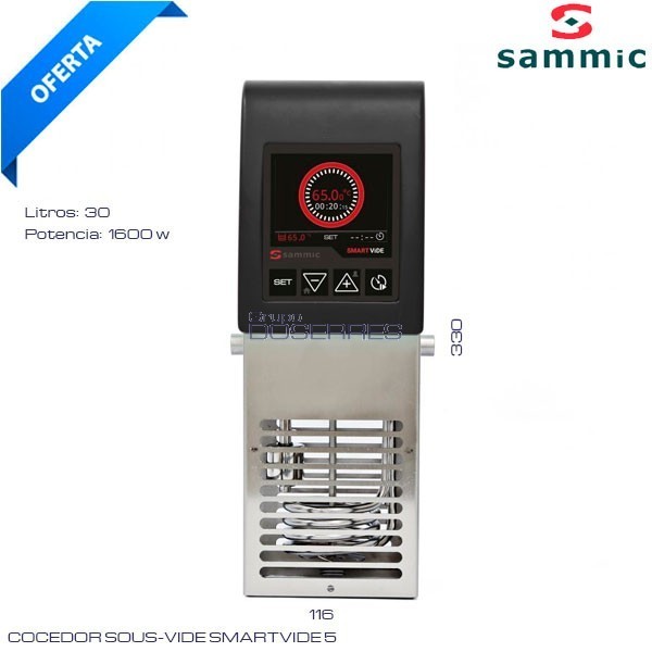 Obtén tu cocedor a baja temperatura Sammic al mejor precio online. Tu Sous-Vide SmartVide 5 para cocer a baja temperatura tus alimentos y dar vía suelta a tu imaginación. Con nuestro cocedor garantizamos la cocción a una temperatura controlada con una gran precisión preservando las cualidades del producto y realzando su sabor y textura.