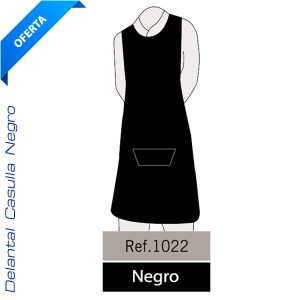 Excelente delantal color NEGRO en forma casulla con bolsillo delantero, ideal para hostelería y alimentación. Talla única.