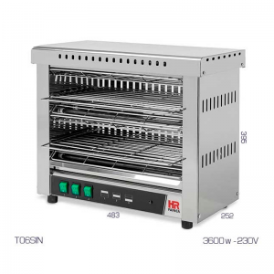 - Tostador industrial sin temporizador Construido en acero inoxidable.